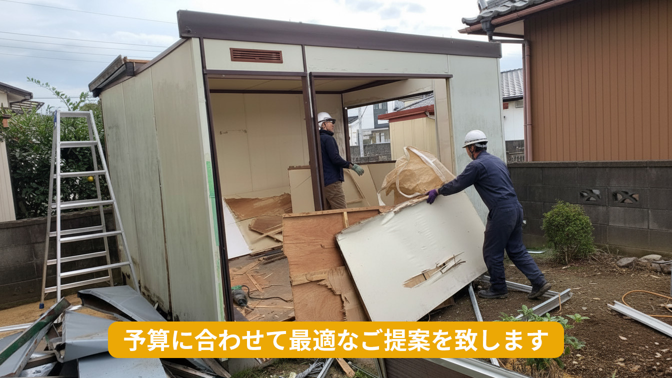 子供部屋として使っていた古いプレハブや、物置・作業場として長年使っていたものでもOK。解体後の搬出・処分まで一括でお任せいただけます。